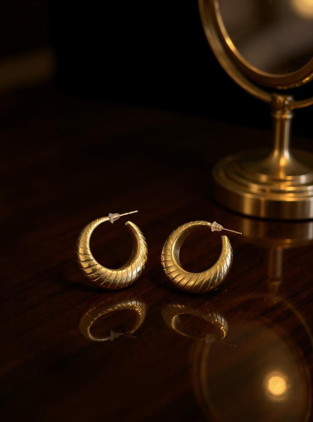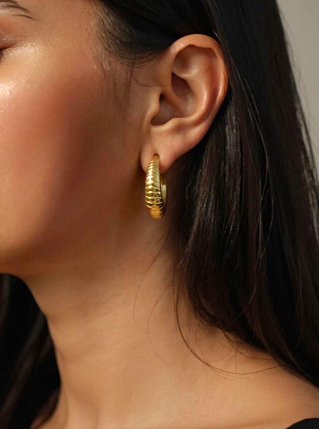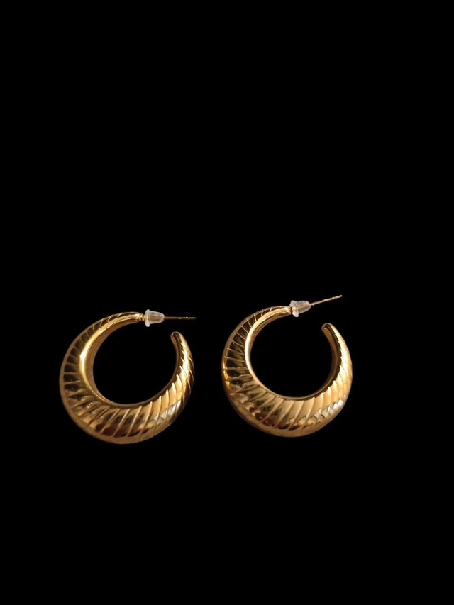 Boucles d'oreilles dorées en acier inoxydable résiste à l'eau ne se rouille pas dans le temps ils sont garantis sans nickel, sans cadmium, et sans sel de plomb.